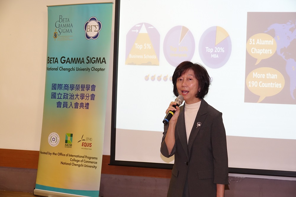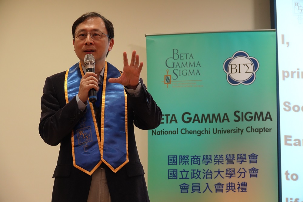2019國際商學榮譽學會(Beta Gamma Sigma,BGS)國立政治大學分會會員人會典禮於12月10日假商學院6樓義育廳舉行入會授證儀式。本年度共有33位優秀學生獲頒入會證書。會中商學院副院長尚孝純教授表示根據國際商學榮譽學會總會規定,必須 是大學學業總成績達班級前10 %,或研究所學業成績達班級前 20 % 的學生,才會被邀請加入,他期勉新成員:「在這麼競爭的條件下,各位新會員能脫穎而出成為BGS一員,實屬不易。在此要特別恭喜各位,也歡迎各位新會員加入。國立政治大學在2008年11月經由BGS總會認證成立政大分會,迄今已招募共計377位會員,包括在座的各位。在此鼓勵各位新會員未來能藉由這個國際學會,有更多與世界一流商管人才切磋學習的機會。」